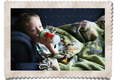 Poor Mason has been sick for 3 and a half days now. He crawled into our bed Monday night/Tuesday morning with a fever and he has kept the fever since then! Once he takes his Motrin, the fever hangs out at 99.8-100.5, but once the Motrin wears off, he’s back up at 101-103. Ugh! Today has been a little better…the highest it has been is 100.9, so we’re hopefully getting there! He’s been extra tired and crabby…espcially once the Motrin wears off. We haven’t been to the doctor since it appears to be a virus since he doesn’t have any other symptoms. Millie was at 101 last night, but seems to be better today. For some reason, it just doesn’t want to leave poor Mason! He was so lethargic the other day that he had me carry him to the bathroom and anywhere he wanted to go…he was too weak to walk. I’m just really hoping he gets over it soon. It’s hard watching your babies be sick!