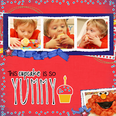 This layout uses some more new goodies from Gina Miller! Mason enjoyed his Elmo cake!